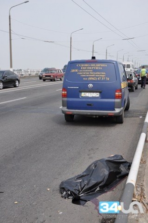 Сам водители ‘МАЗа’ остановился уже через несколько десятков метров, как рассказали инспекторы, он ‘свысока’ мог просто вообще и не заметить что произошло. На место приехал наряд ГАи и эксперты-криминалисты – для их работы была перекрыта одна полоса движения в направлении на левый берег Днепра. Из-за этого на одной из основных магистралей города быстро образовалась пробка, длинной в половину моста, а пассажиры некоторых маршруток решили пешком пройтись по мосту, однако на пути их ждало неприятное зрелище.