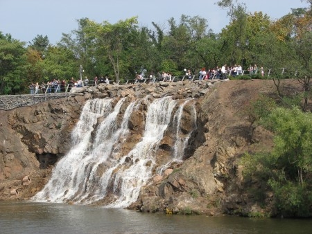 На День города Днепропетровск получил еще один прекрасный подарок – рукотворный водопад ‘Поріг Ревучий’, который украсил один из склонов Монастырского острова.