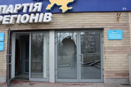 В Днепропетровске неизвестные с коктейлями Молотова в руках напали на офис областной организации Партии регионов.