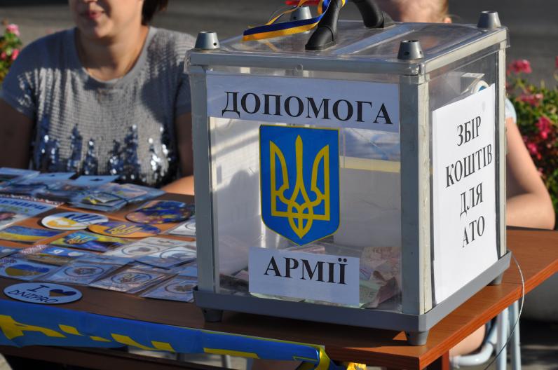 Вечерняя программа празднования Дня государственного флага Украины также была насыщена мероприятиями. Так в 18:00 на Фестивальном причале открылась благотворительная ярмарка в помощь бойцам АТО. Днепропетровские рукодельницы торговали вышивкой, патриотичными футболками и изделиями из бисера. Тут же можно было сделать маникюр в сине-желтых цветах и написать письмо солдату. В перерывах между торговлей продавцы-волонтеры общались между собой: ‘А почем вы каски брали? Нет, мы дороже…’, ‘Целокса нет, привезли на днях, все расхватали в момент. Если что-то появится – я Вам сообщу’. Днепропетровские тылы живут своей напряженной жизнью. Все деньги, собранные на ярмарке, пойдут в поддержку бойцам на передовой и в госпитали Днепропетровска.