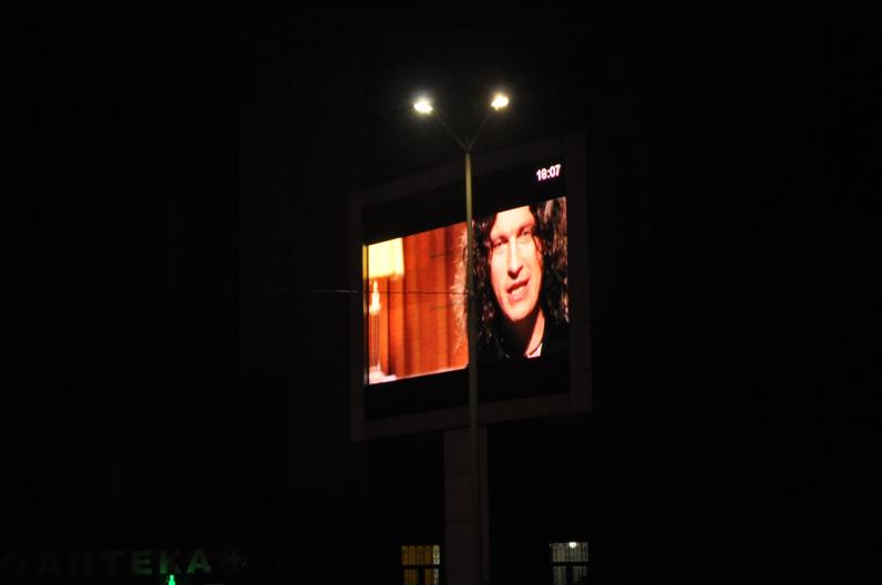 Свечи не хотели гореть под дождем, мокрые фотографии расползались в руках типографской краской, головки алых гвоздик были почти наполовину погружны в холодную воду. С экрана над площадью на людей смотрел еще живой Андрей, а пара сотен поклонников, шмыгая носами и топая по лужам в такт, выводила: