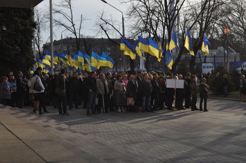 Также ко встрече подготовились люди перед ОГА, которые скромно называли себя симпатиками президента, но при этом держали в руках удивительно одинаковый патриотичный инвентарь.