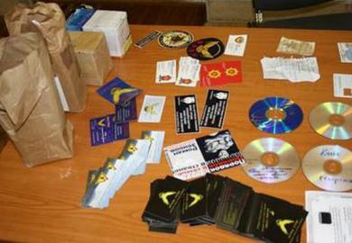 Во время санкционированных обысков сотрудники СБУ изъяли компьютерную технику, открытки, георгиевские ленты, атрибутику с символикой пророссийских структур, экземпляры агитки Русский мир.