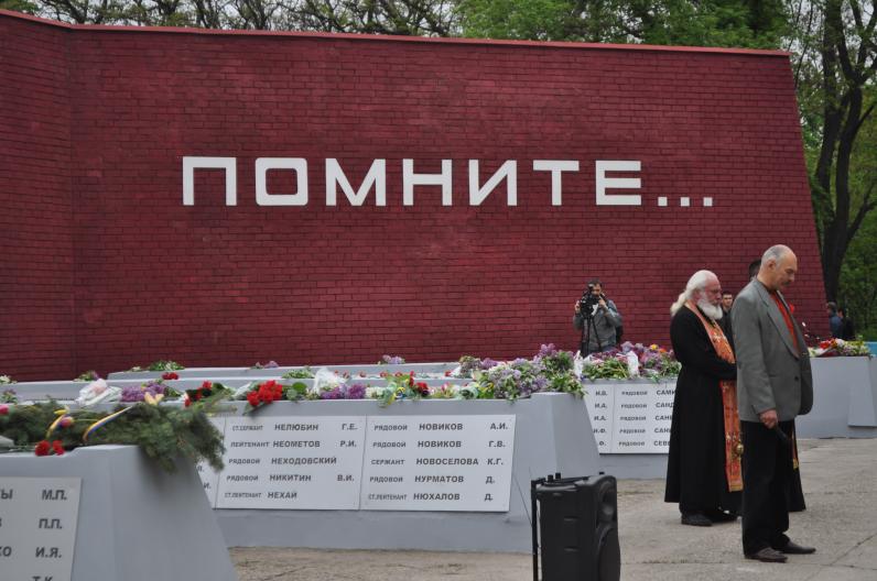 Участники марша шли по аллеям проспекта Карла Маркса. Конечным пунктом их шествия стал парк Калинина. Там священники провели службу, а участники акции возложили цветы к мемориалу погибшим в годы войны.