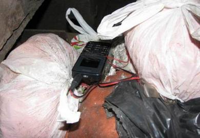 На место происшествия немедленно выехала оперативно-следственная группа, которая обнаружила 25 пластиковых пакетов с взрывной смесью и детали самодельного взрывного устройства провода, соединенные с мобильным телефоном и электрический датчик движения.