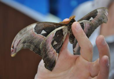 Кокон мы поместили в специальные условия с повышенной влажностью (90%) и температурой. Примерно за неделю мы получили бабочку. Мы очень переживали, поскольку это ночная бабочка, и ее особенность замедление развития при падении температуры или стрессе. И она могла появиться не через неделю, а весной. Это самец бабочки, что понятно по большим усикам, – рассказал Евгений Буяновер.