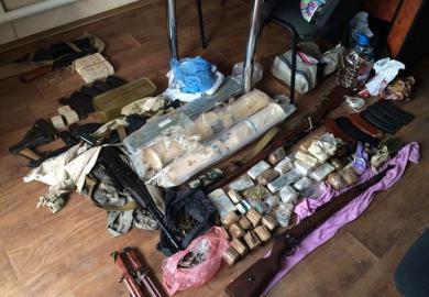 Во время обысков в помещениях и по месту работы злоумышленников сотрудники СБУ изъяли 6 РПГ, 13 гранат (Ф-1 и РГД-5), 14 запалов ручных гранат, 3 тротиловые шашки общим весом 600 г, 4 пистолета, 2 ружья Мосина, 5 автоматов, около 4,5 тысяч патронов различного калибра, 2 устройства для бесшумной ведения огня, а также поддельные паспорта граждан Украины.
