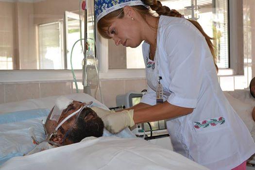 ‘К нему смерть приближалась, но прошла мимо. Роман, 33 года. Вчера полная разруха. ИВЛ, кома, на теле нет живого места. Геморрагический и травматический шок. Медсестра Виктория, видавшая многое, без содрогания не может до конца прочитать диагноз. Сегодня снят аппарат, динамика положительная. Боец говорит, и все время просит: ‘Сестричка, дай воды’, написал Рыженко.