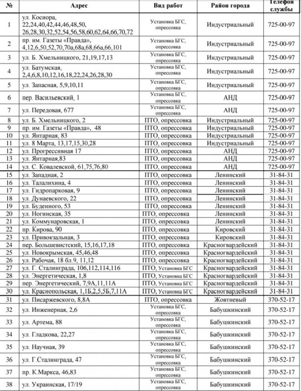 В связи с этим с 9 по 12 ноября будет приостановлено газоснабжение по следующим адресам: