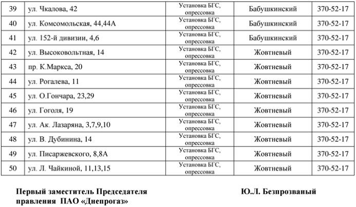 ПАО ‘Днепрогаз’ информирует о графиках проведения ПТО внутридомовых систем газоснабжения и установки бытовых счетчиков газа.