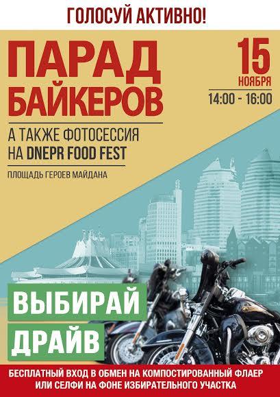 Так, обменять фото на фоне участка можно будет на профессиональную фотосессию в одной из лучших профессиональных студий города ProStudio. Среди других заметных мероприятий для сознательных избирателей возможность бесплатного посещения музея ретро-машин, экскурсии по служебным помещениям Днепр-Арены и автограф-сессии футболистов Днепра, камеди-шоу от лучших юмористов региона, концерта рок-групп Днепропетровска, парада днепропетровских байкеров, встречи с реальными бойцами из зоны АТО и пр. В первой половине дня опытный экскурсовод Юрий Фаныгин проведет всех желающих по неизвестным достопримечательностям Днепропетровска.