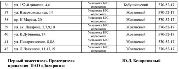 Газа не будет по следующим адресам: