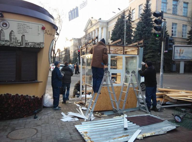 Ровно неделю назад хозяев торговых точек на улицах Днепропетровска предупреждали о скором демонтаже конструкций и просили убрать их самостоятельно. Сегодня на проспекте Карла Маркса был снесен первый МАФ. Сколько их еще демонтируют – неизвестно. По словам и.о. директора Департамента потребительского рынка и сферы услуг городского совета Днепропетровска Дмитрия Терентьева, сейчас в Днепропетровске 4,5 тыс МАФов. 900 из них имеют договоры, еще 60 – паспорт привязки. Остальные не платят налоги, а люди, которые там работают не имеют официального трудоустройства.