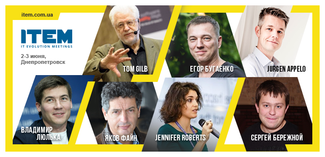 С 1 апреля ITEM проводит серию бесплатных вебинаров со спикерами. Первые два вебинара с самыми вкусными спикерами нашей программы Томом Гилбом и Юргеном Аппело. Ближайший 7 апреля с Юргеном Аппело, одним из самых знаковых фигур Agile в мире. На вебинарах можно будет задать каверзные вопросы спикерам и выиграть большую скидку на билет на конференцию.