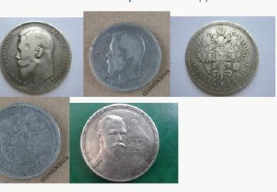 – Монеты серебряная рубль 1899 года (14 штук),