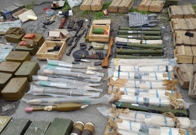 В частном гараже на территории одного из гаражных кооперативов Днепра правоохранители изъяли два огнемета Шмель, 12 гранатометов РПГ-26, пистолет-пулемет Судаева, снайперскую винтовку Драгунова, пистолет ТТ, два подствольных гранатомета, четыре ящика гранат (РГД, Ф-1) – 70 штук, патроны калибра 7,62 мм 7 ящиков по 1720 штук, патроны калибра 5,45 мм 3 ящика по 2100 штук, 2 противотанковые мины, гранаты к подствольным гранатометам 6 цинков по 20 штук, 17 выстрелов ВОГ, патроны к станковому пулемету два цинка, снаряженные магазины к автомату Калашникова – 25 штук, 4 выстрела к пушке калибра 40 мм, танковый снаряд калибра 120 мм, 4 бронежилета и т. п.