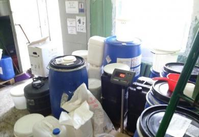 Полицейские во время санкционированного обыска, проведенного на территории цеха, изъяли фальсифицированную готовую продукцию (шампуни, жидкое мыло, маски для лица), накладные о приобретении сырья, черновые записи, документы по ведению деятельности, а также оборудование необходимо для изготовления косметики.
