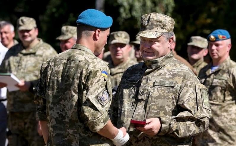 ‘За мужество и героизм в боях с российскими оккупантами 2 295 воинов десантников были награждены государственными наградами. 7 из них награждены званием ‘Героя Украины’, – сообщил Порошенко.