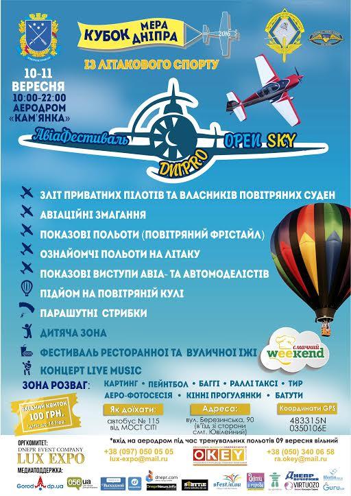 В Днепре пройдет АвиаФестиваль DNIPRO OPEN SKY”, приуроченный к юбилейному Дню города”