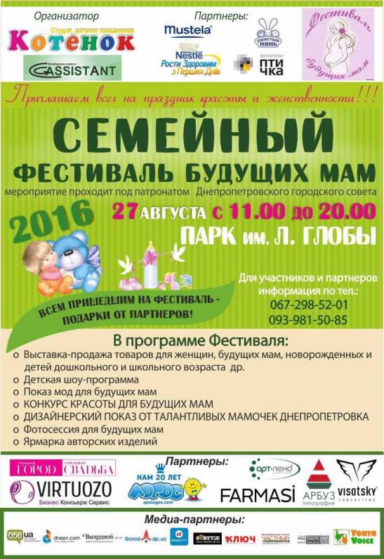 27 августа 2016 г. планируется провести Шестой ежегодный Фестиваль будущих мам.