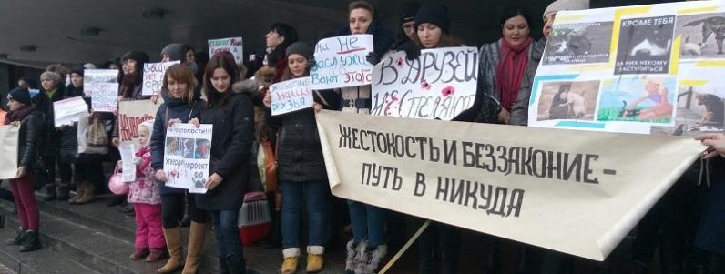 9 декабря борцы за справедливость по отношению к животным обступили стены городского совета Днепра.