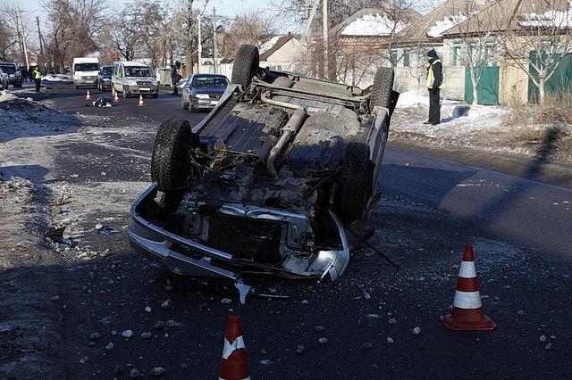 В Днепре в результате ДТП перевернулся автомобиль ‘Лада’, водитель которого пытался избежать столкновения с пешеходом.