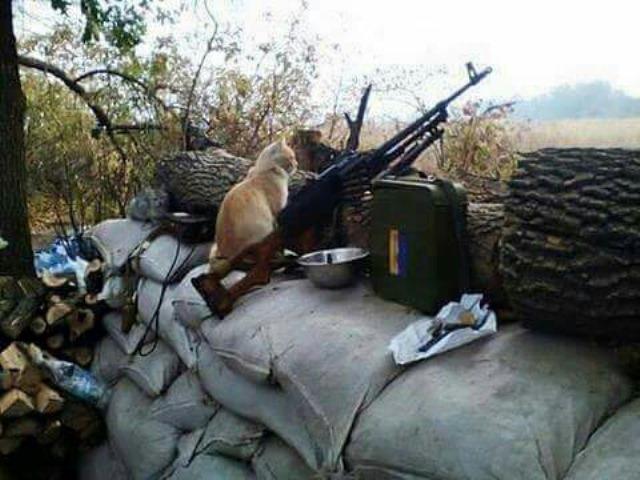 Друзья на войне – это 28 фотографий. На них – коты и собаки, которые живут в зоне АТО. Их дома – окопы и блиндажи, а хозяева – украинские военные.