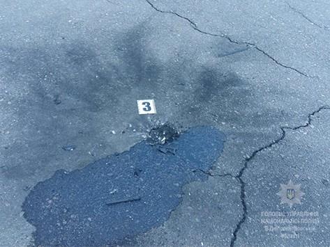 В результате обнаружена воронка диаметром около 12 см и глубиной примерно 3 см. Вокруг воронки наслоения копоти черного цвета. Также обнаружили рычаг запала гранаты, металлическое кольцо с чекой и металлические фрагменты обломков взрывного устройства. На кузовах нескольких находившихся рядом авто обнаружены механические осколочные повреждения.
