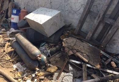 В 14:52 пожар, площадью 80 кв. метров, ликвидирован. Огонь уничтожил мусор, старые резиновые шины и повредил 4 окна здания (от ударной волны).
