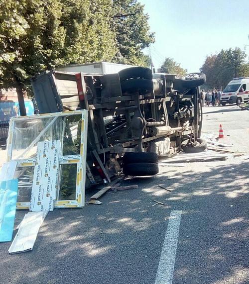 11 августа, на пересечении пр. Поля и ул. Гавриленко произошло ДТП, в результате которого перевернулся автомобиль Газель, перевозивший металлопластиковые окна.
