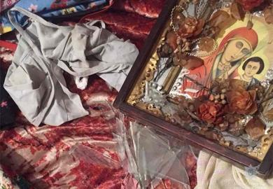 Полицейские обнаружили в квартире мужчину, который находился в состоянии наркотического опьянения, в комнате находилось устройство для употребления наркотиков и пакеты с марихуаной. На полу лежала старушка в бессознательном состоянии, рядом лежала окровавленная икона. Мужчина признался в том, что он избил свою бабушку. Ему показалось, что в бабушку вселился злой дух и он пытался его убить.