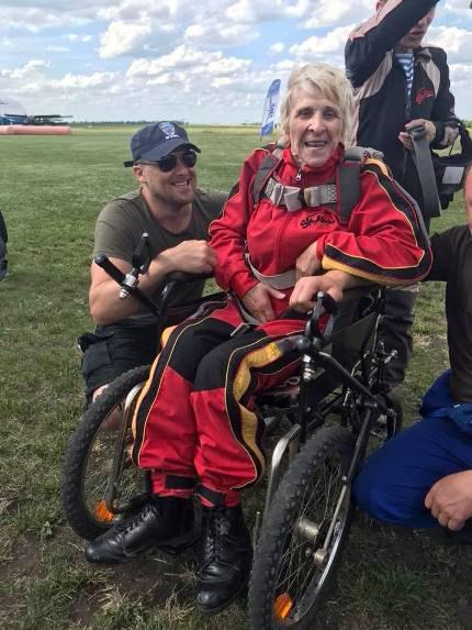 В Днепропетровской области женщина на инвалидной коляске отметила свой день рождения тандем- прыжком с парашютом.