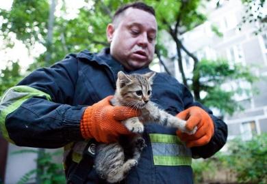 Доставали котенка четыре спасателя аварийно-спасательной части аварийно-спасательного отряда специального назначения Главного управления ГСЧС Украины в Днепропетровской области.