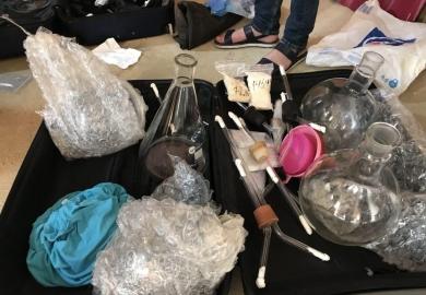 У наркодельца, кроме самого метамфитамина, нашли лабораторное оборудование для изготовления психотропного вещества (колбы, прозрачные стеклянные трубки, капельницы, вентилятор), электронные весы, пустые слип-пакеты и записи с описанием процесса изготовления психотропного вещества.