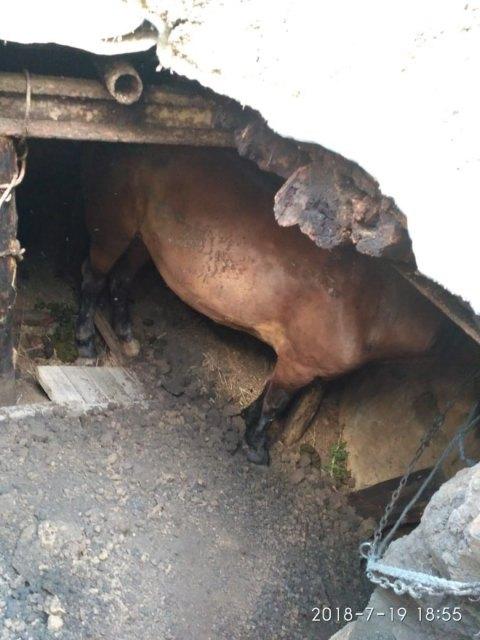 В Синельниковском районе, Раевский ОТГ, с. Богуславка конь провалился в заброшенный погреб.