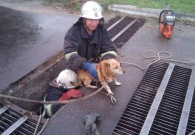 На Днепропетровщине спасатели достали собаку из ливнёвки