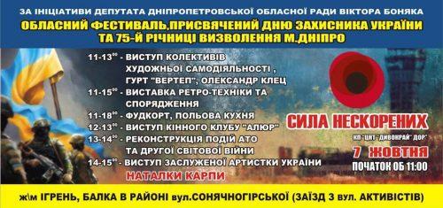 У неділю, 7 жовтня, напередодні Дня захисника України у Дніпрі відбудеться фестиваль Сила Нескорених. Про це розповіли організатори заходу.