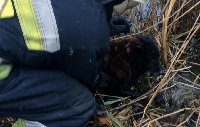 В Днепре спасатели доставали собаку, которая застряла лапами в болоте и не могла выбраться.