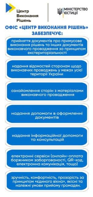 В рамках экспериментального проекта в соответствии с требованиями Стратегии реформирования судоустройства, судопроизводства и смежных правовых институтов на 2015-2020 гг. в части реформирования института выполнения решений, утвержденной соответствующим постановлением Кабинета Министров Украины, 21 декабря 2018 года в городе Днепр открыт первый в Украине Центр исполнения решений. Центр открыт в новом современном формате, где граждане смогут быстро, без лишних очередей получить квалифицированную и качественную помощь по любым вопросам исполнительного производства.