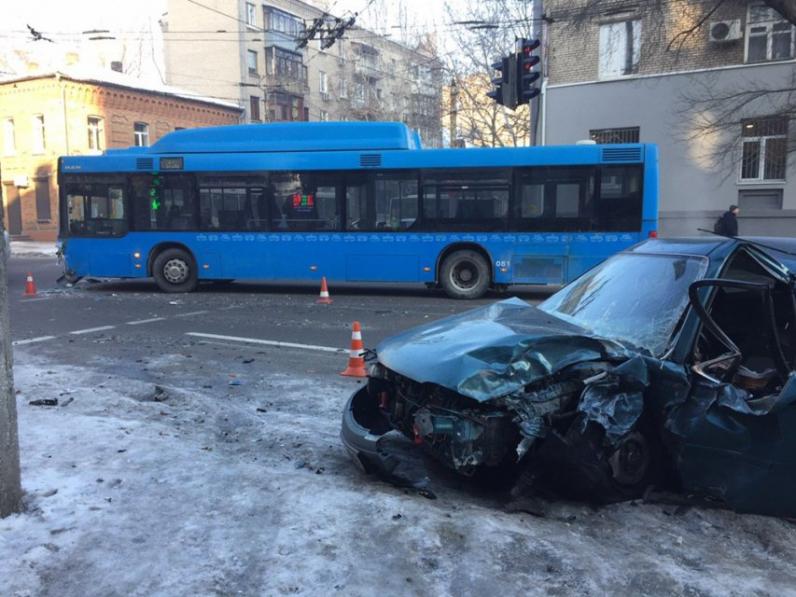 17 января в центре Днепра столкнулись Mazda и пассажирский автобус №88.