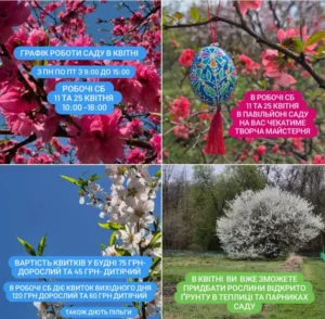 У квітні Ботсад ДНУ працюватиме у будні з 09:00 до 15:00. Також заплановані робочі суботи: 11 та 25 квітня – з 10:00 до 15:00.