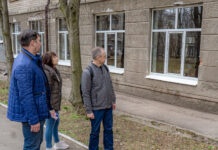 Нині у школі взялися прибирати скло. Керівник школи Олександр сказав, що вже вдруге доводиться усувати наслідки атак російської армії.