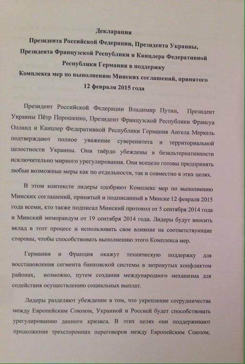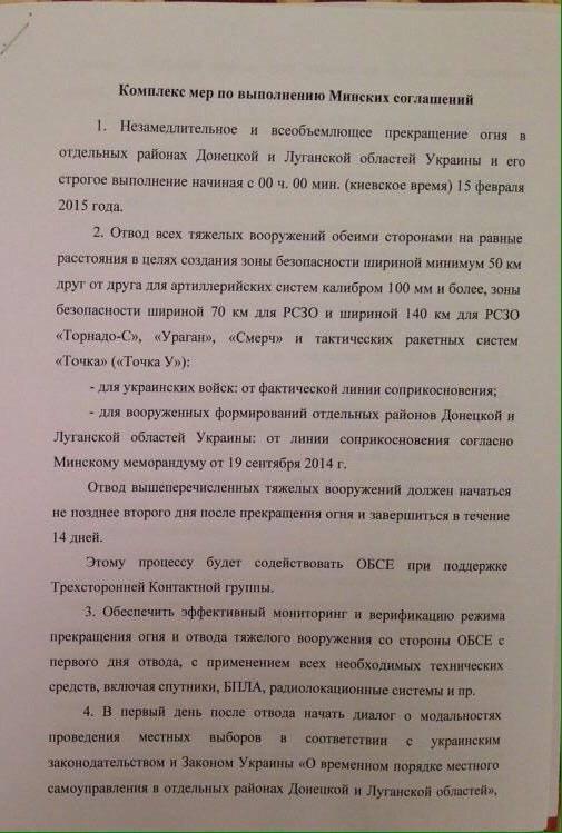 Полный текст подписанных по результатам переговоров ‘нормандской четверки’ в Минске договоренностей появился в сообществе ‘Евромайдан’ на Facebook.