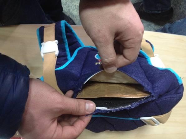 Сотрудники СБУ нашли 300 г героина в посылке с детскими вещами, которую получал из Индии гражданин Нигерии. Наркотик был спрятан в подкладке рюкзака-кенгуру для новорожденных.