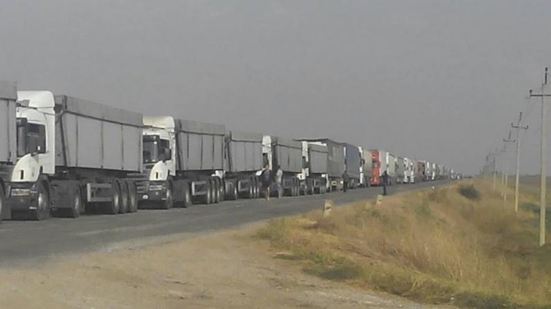 Продолжается блокирование движения грузовых автомобилей в Крым и из него на всех дорогах через административную границу с Херсонской областью.