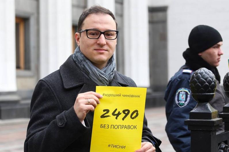 В соцсетях принятие закона поддержали сотни активистов. А под Радой проходит акция ‘Тисни! № 2490’. Общественные активисты призывают нардепов поддержать закон и надеются, с принятием закона ‘каждый сможет участвовать в конкурсе на должности госслужащих’, ‘госслужащий не будет назначать под патронатом политиков’, ‘госслужащие смогут работать исключительно в профильных министерствах’.