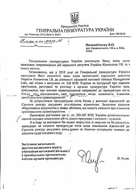 Результатів розслідування громадськість так і не дізналася, бо його не було. На додаток до своїх звернень ще від 26 серпня 2015 року, уже 16 травня цього року лідер Руху Справедливість додатково передав до Національного Антикорупційного Бюро, Генеральної прокуратури і парламентського Комітету з питань запобігання і протидії корупції уже нові заяви про вчинення кримінального правопорушення, вимагаючи розслідувати діяльність ще двох пов’язаних з INTRACO офшорів – Kitromi Limited i Vincenz Limited.