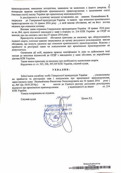 Тепер, згІдно з прийнятим судом рішенням, що пропонується вашій увазі, ГПУ зобов’язана зареєструвати мою заяву і внести до ЄРДР відомості про кримінальне правопорушення. Це вже поступ, враховуючи, що ще у серпні минулого року я вимагав від Генеральної прокуратури розпочати розслідування причетності депутатів від БПП до діяльності зареєстрованої на Британських Віргінських островах офшорної компанії INTRACO Management Ltd, – повідомив Валентин Наливайченко.