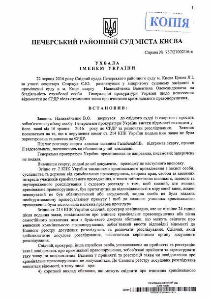 І ось, ми маємо на руках рішення суду, а перед Генпрокуратурою стоїть серйозний виклик і випробування: розслідувати і притягнути до відповідальності владних корупціонерів, або спустити все на гальмах, – повідомив Валентин Наливайченко.