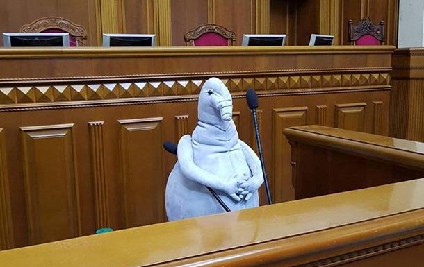 Внефракционный депутат Верховной Рады Борислав Береза принес мягкую игрушку в виде Ждуна на сегодняшнее заседание в парламент, в ходе которого состоится час вопросов к правительству.